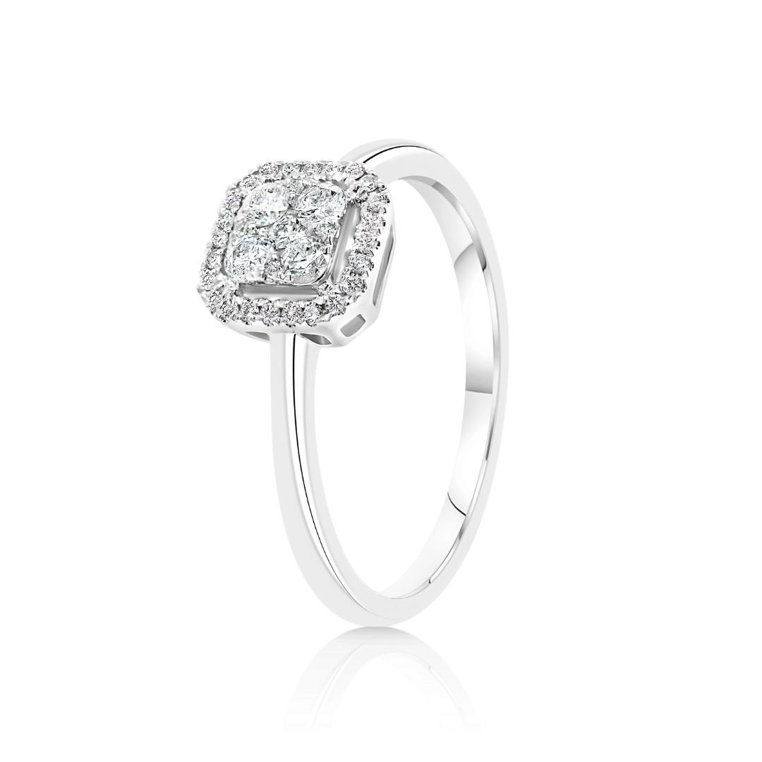 Inel de logodnă din aur alb de 18K cu 33 de Diamante naturale Round Brilliant.