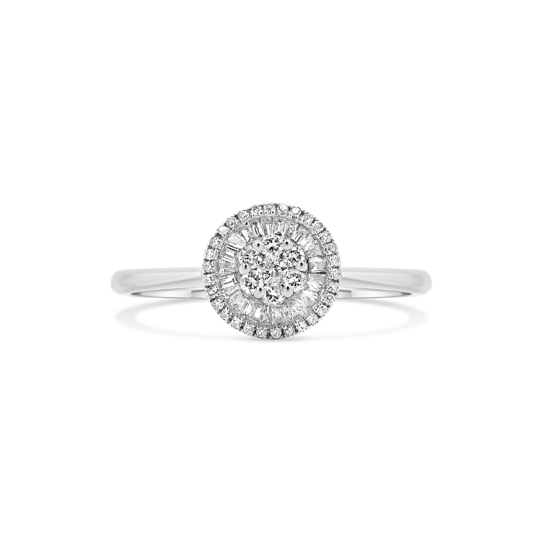 Inel din aur alb de 18K cu Diamante naturale Round Brilliant și Baguette.