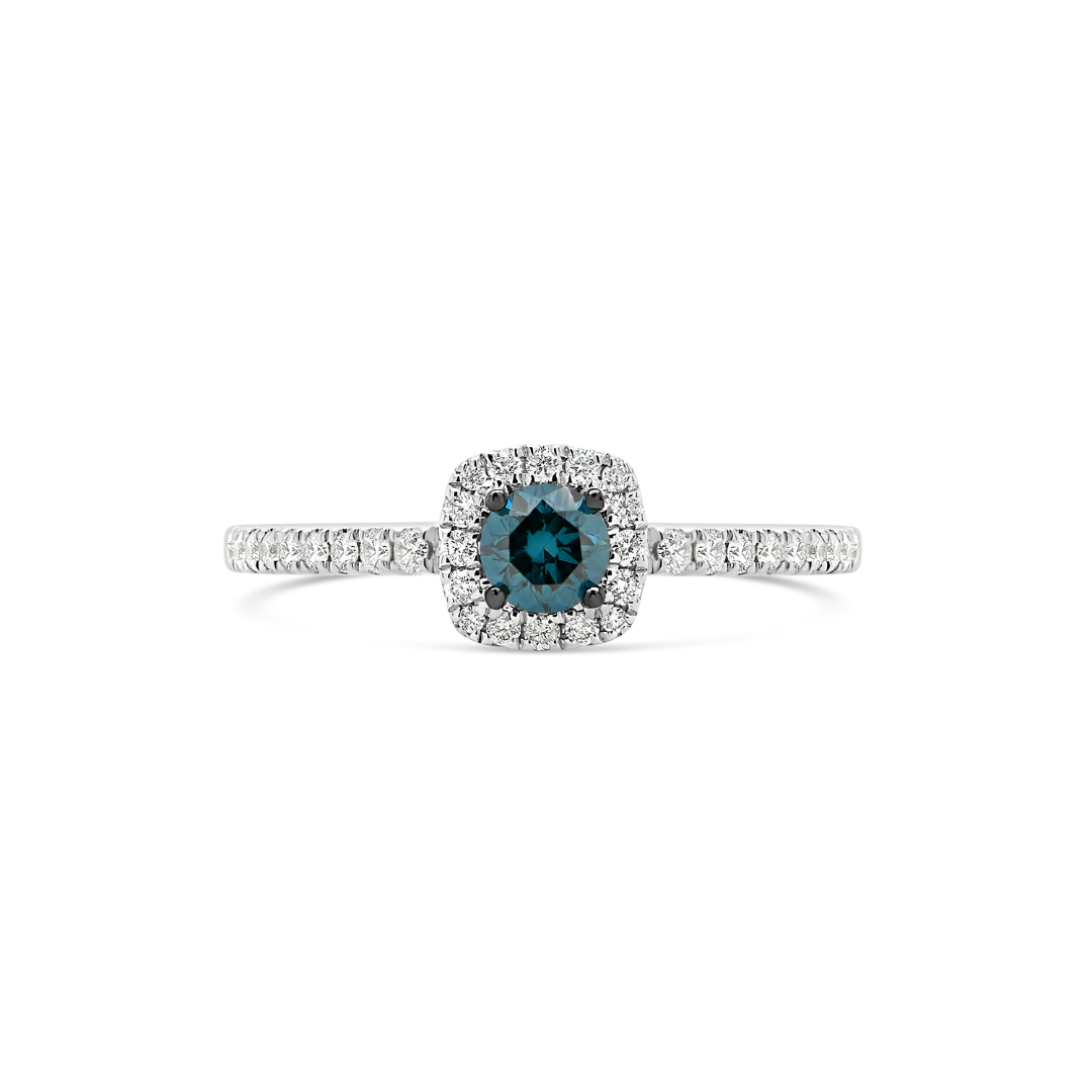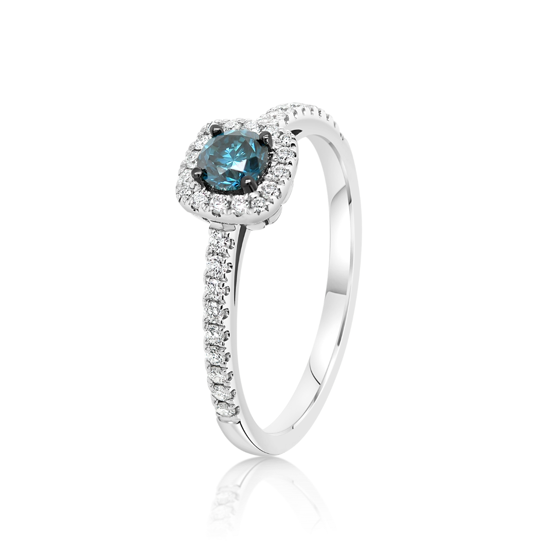 Inel din aur alb de 18K cu un Diamant Ice Blue de 0.30ct și 34 de Diamante incolore de 0.21ct.