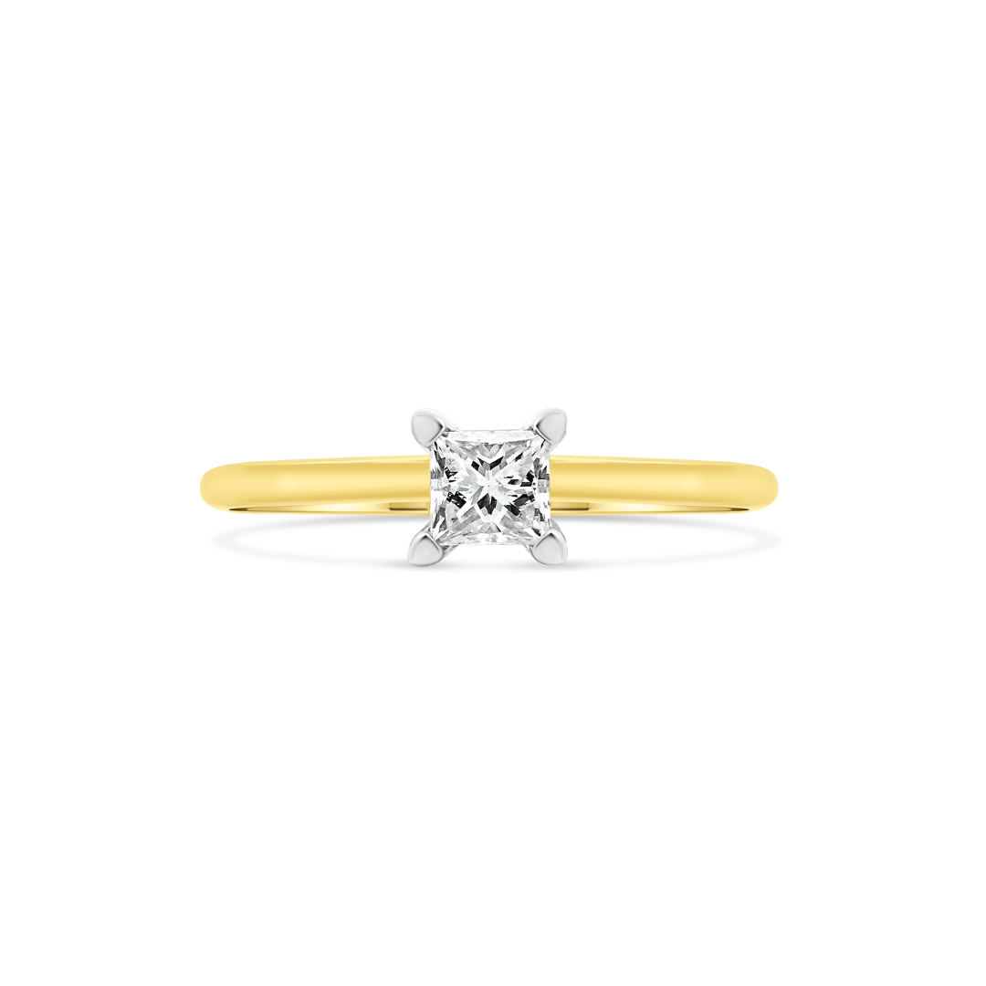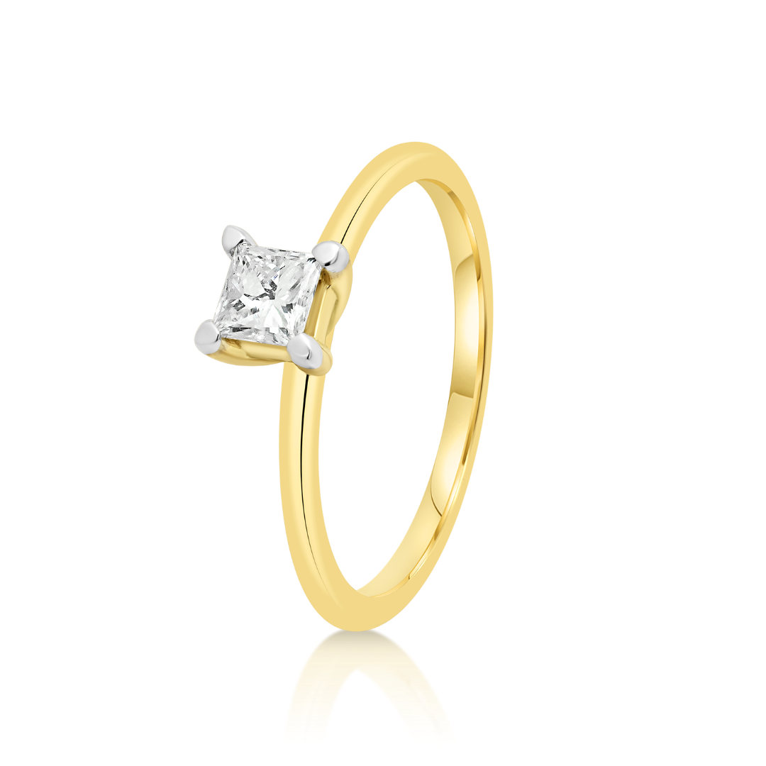 Inel de logodnă din aur galben de 18K cu Diamant Princess natural.