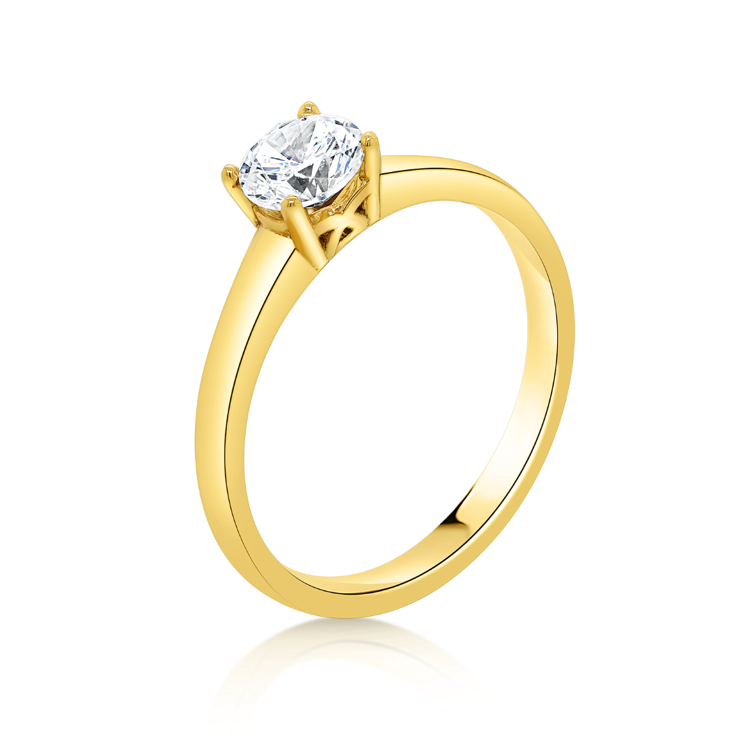 Inel din aur galben de 18K cu Diamant natural Round Brilliant.