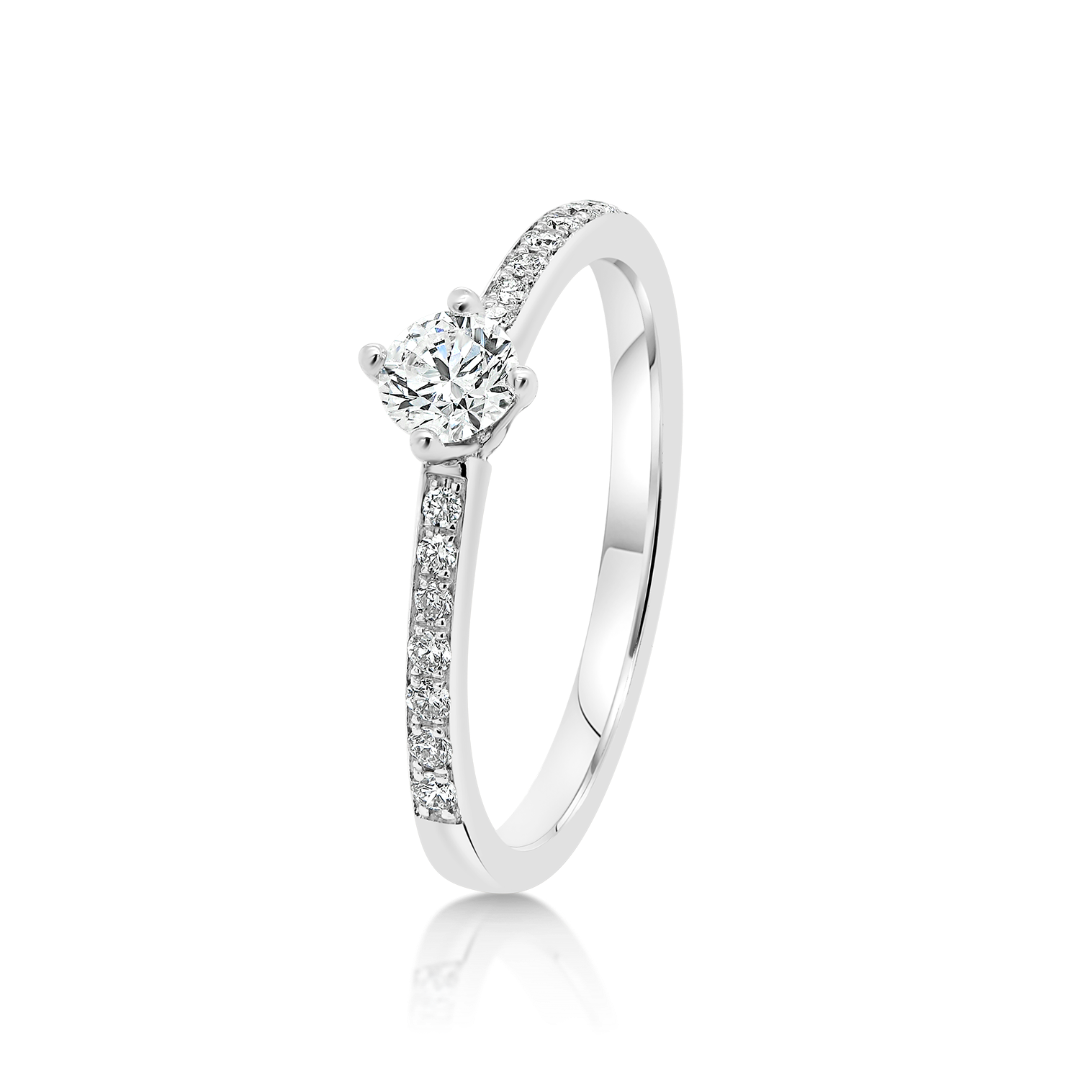 Inel de logodnă din aur alb de 14K cu pietre cubic zirconia.