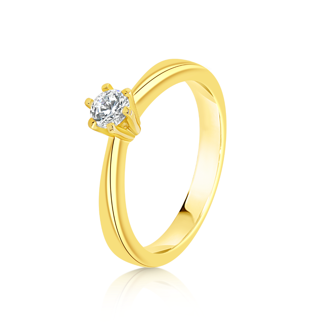 Inel de logodnă din aur galben de 14K cu piatră cubic zirconia.
