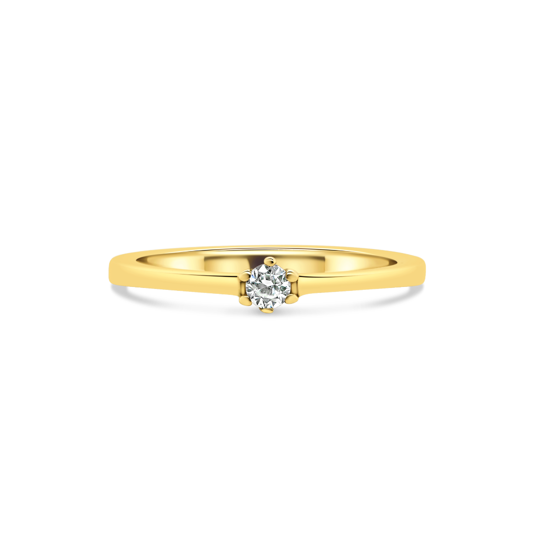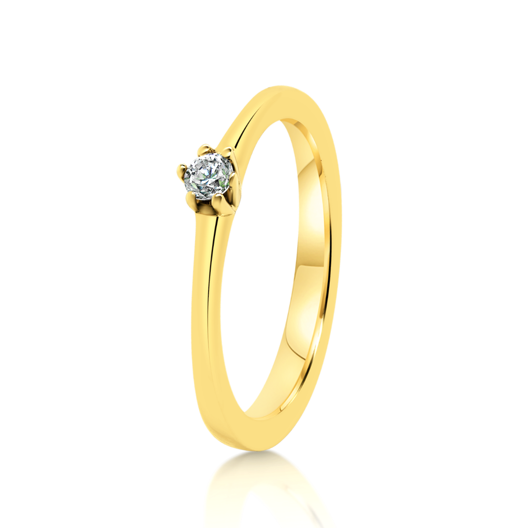Inel de logodnă din aur galben de 14K cu piatră cubic zirconia.