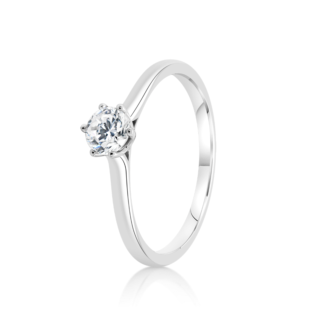 Inel de logodnă din aur alb de 14K cu piatră cubic zirconia.