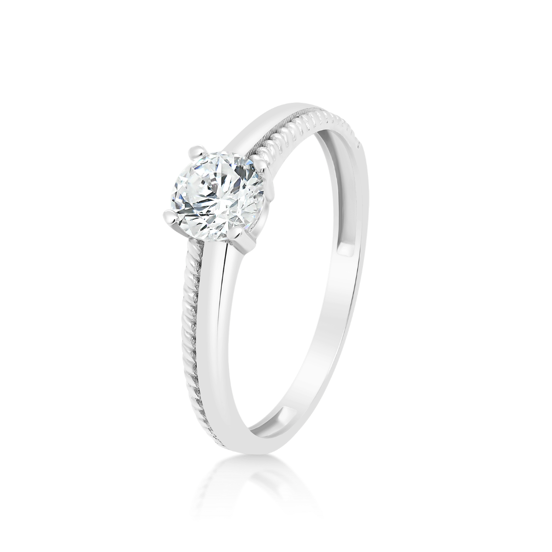 Inel de logodnă din aur alb de 14K cu piatră cubic zirconia.