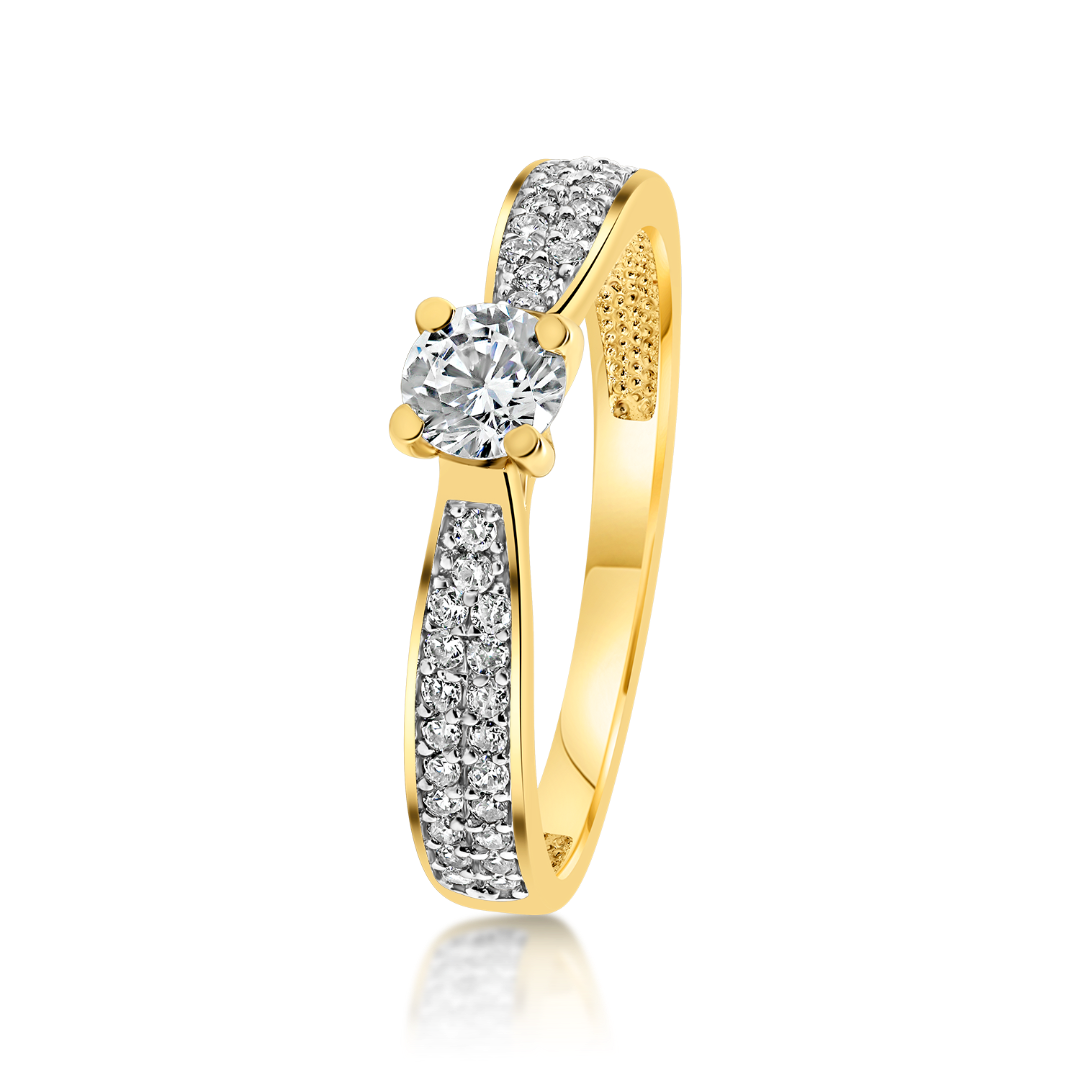 Inel de logodnă din aur galben de 14K cu pietre cubic zirconia.