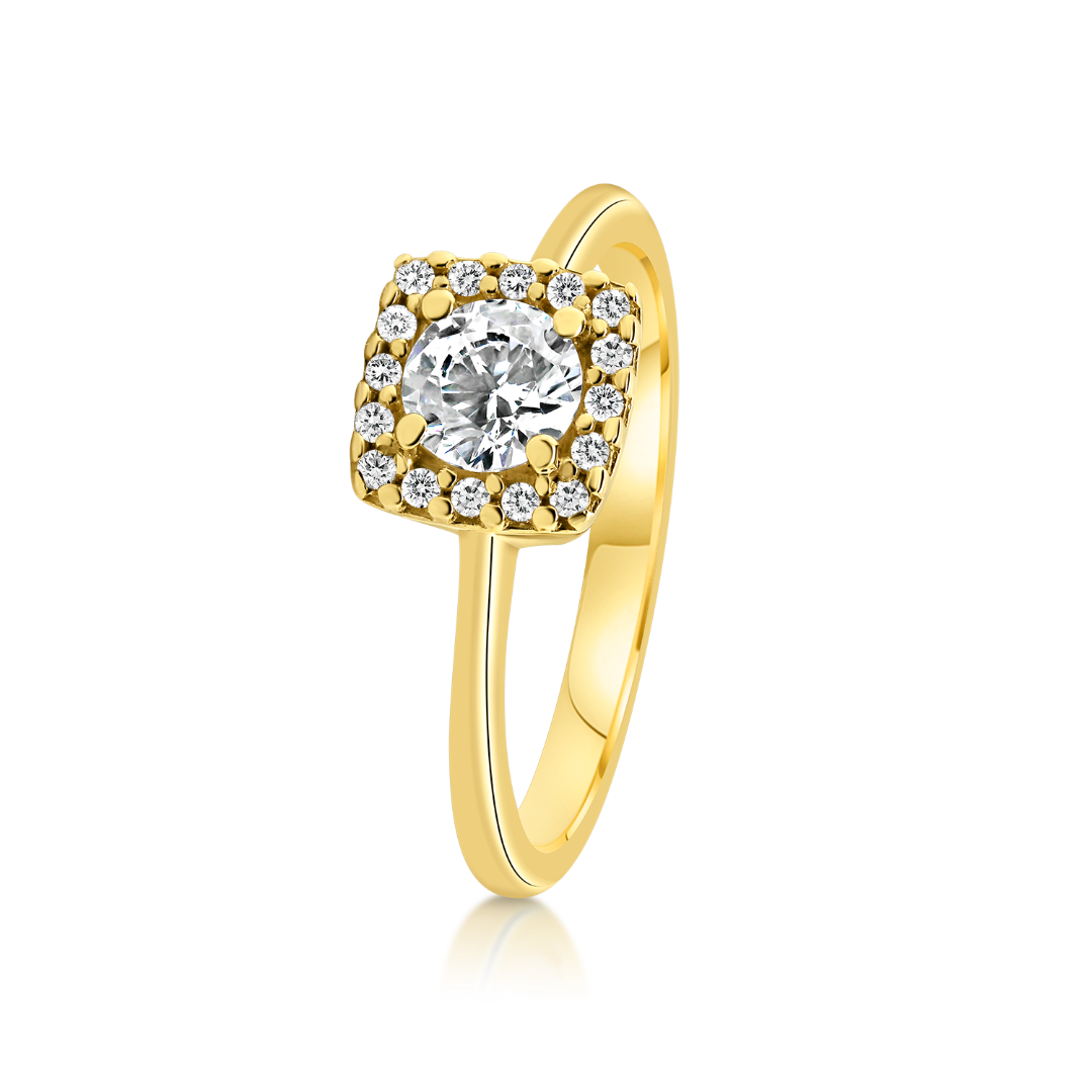Inel din aur galben de 14K cu pietre Cubic Zirconia albe.