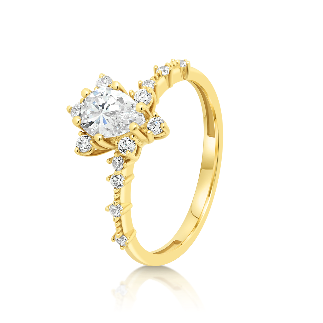 Inel din aur galben de 14K cu pietre cubic zirconia incolore.